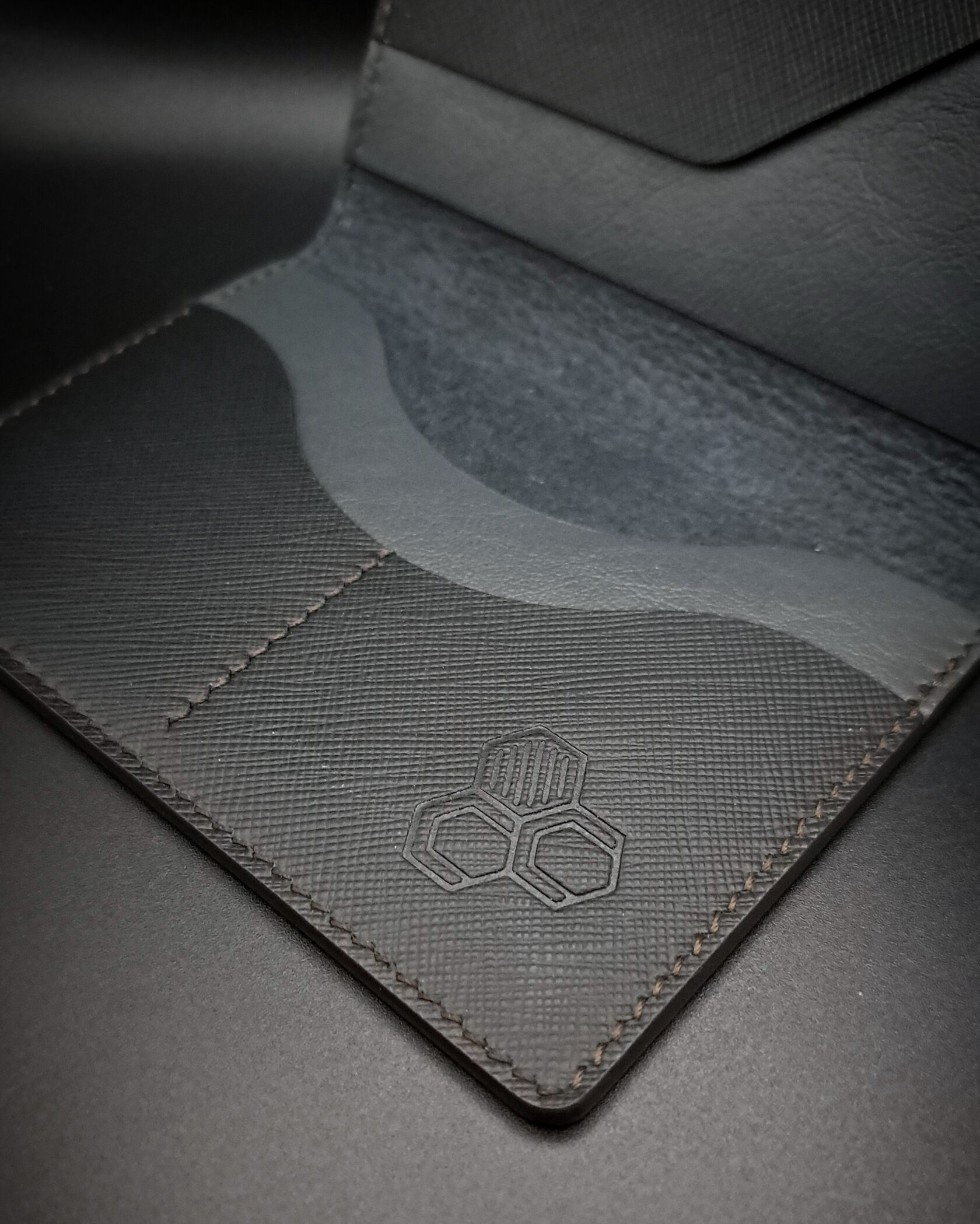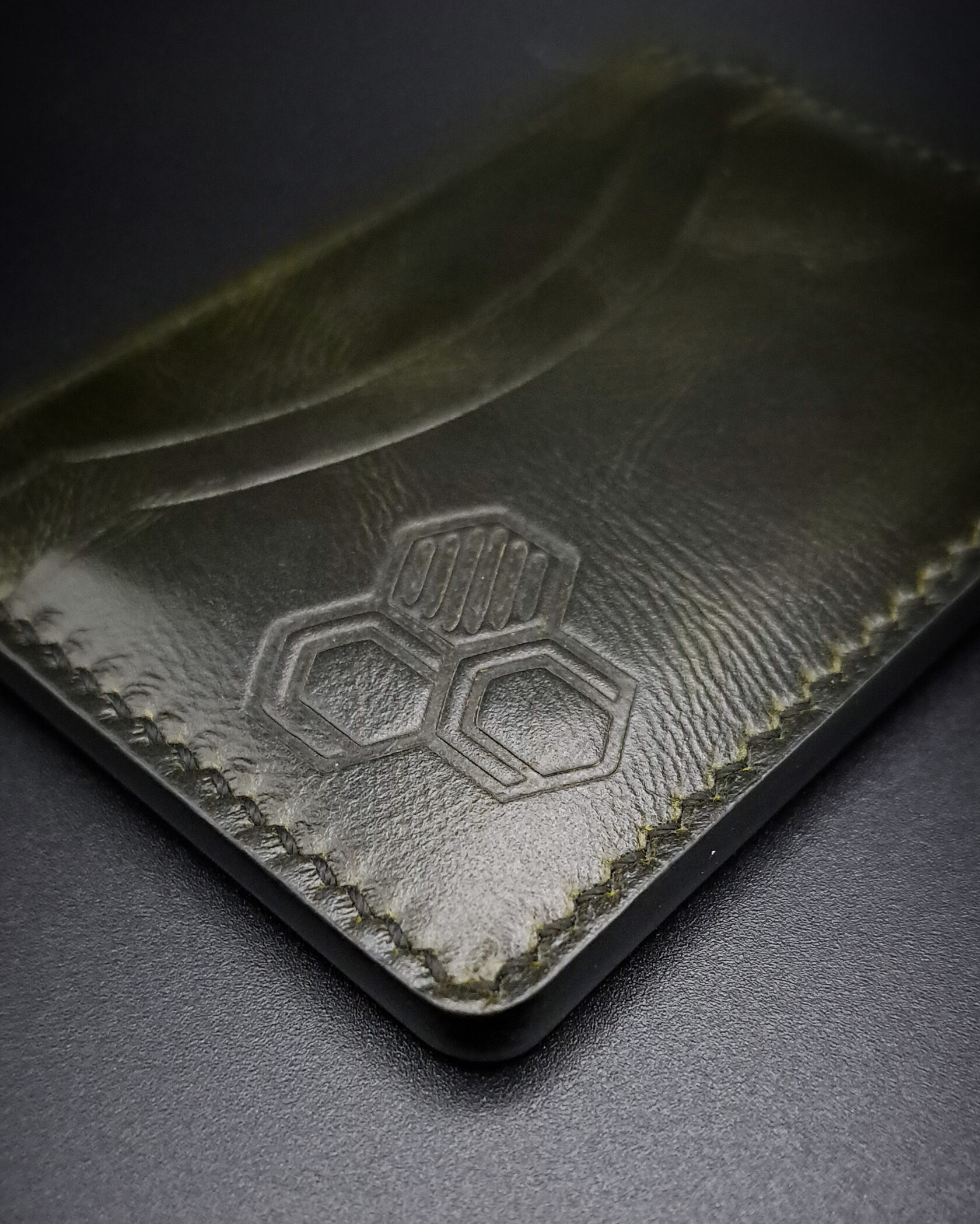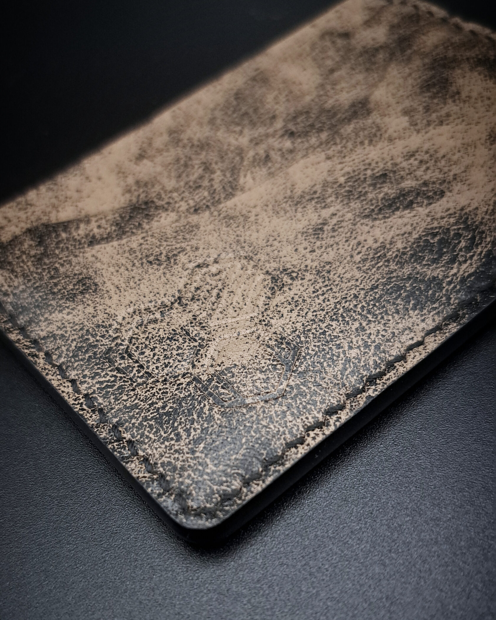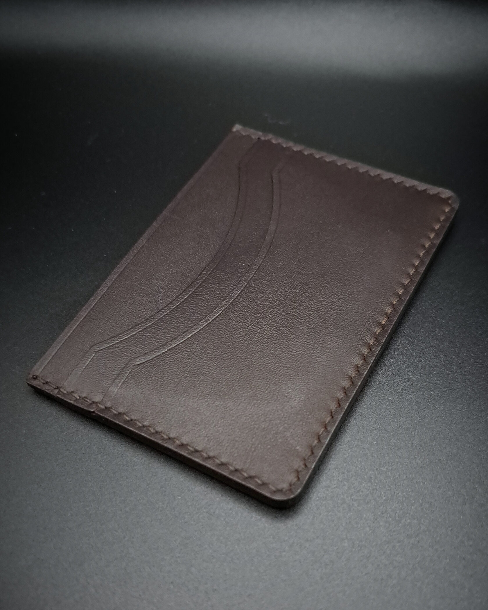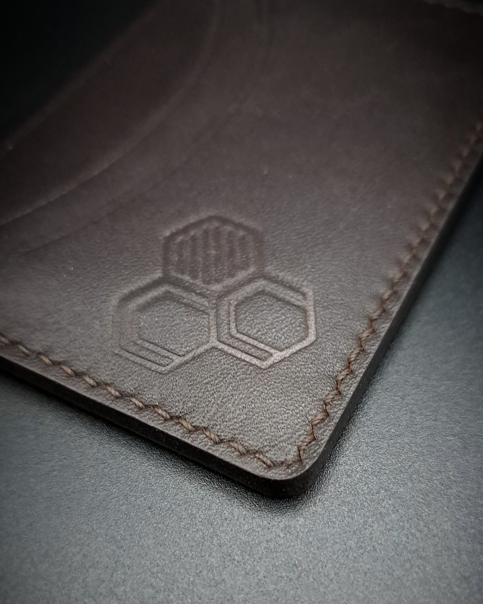 Придерживаясь минимализма, мы создали наш первый кошелек, имевший одно отделение для денег и два для карт. Сейчас дизайн полностью доработан, и в этой модели продумано все. Стандартная версия на 4 карты. Прошивается и обрабатывается только вручную!