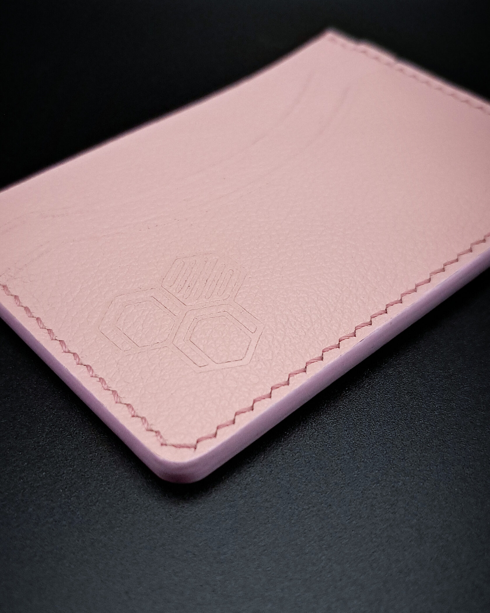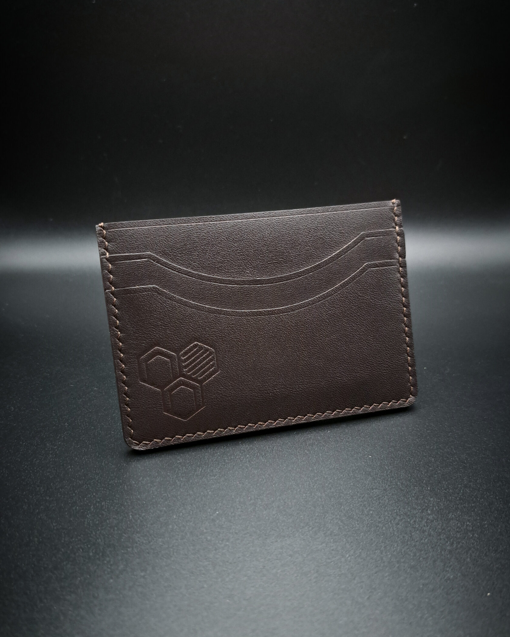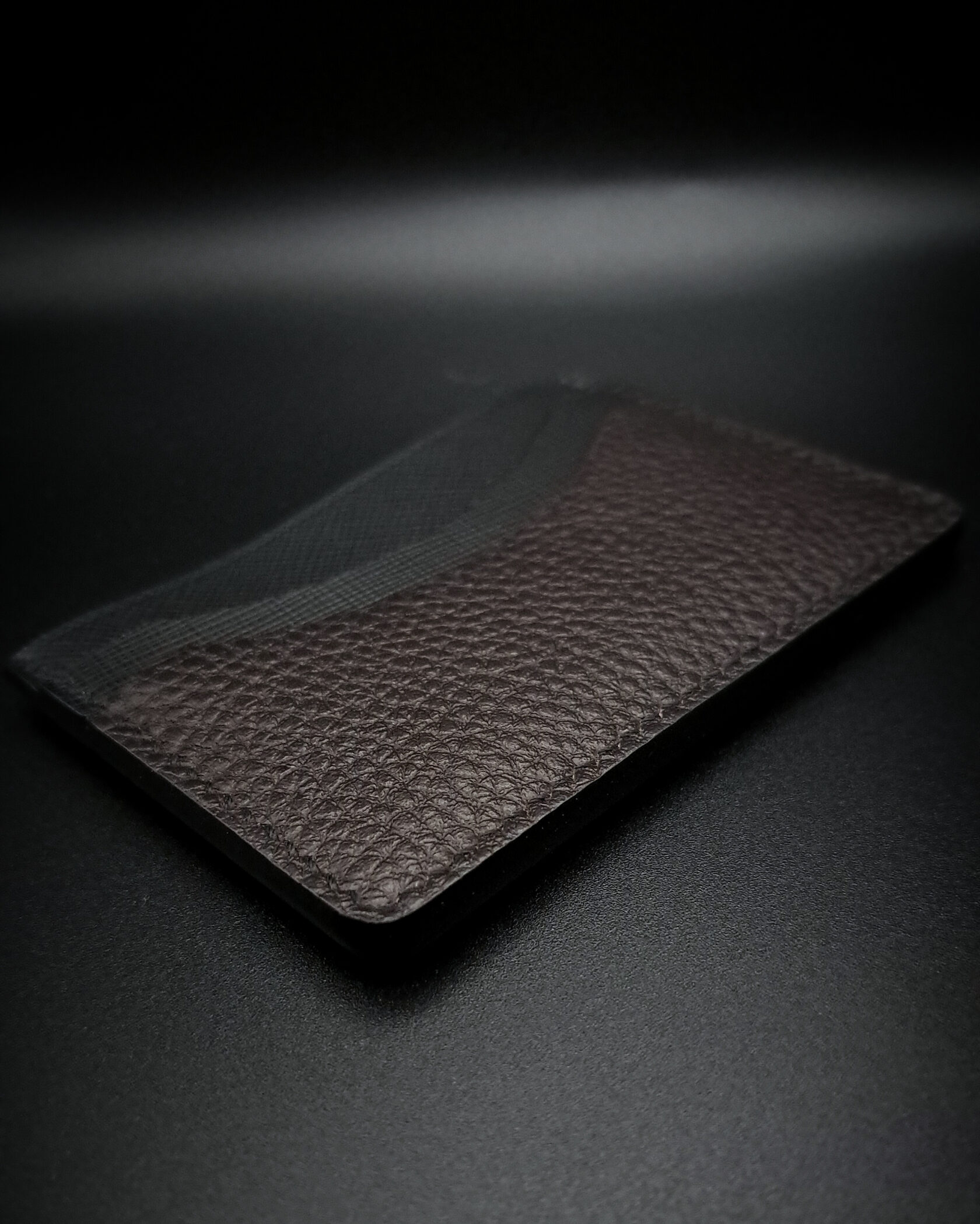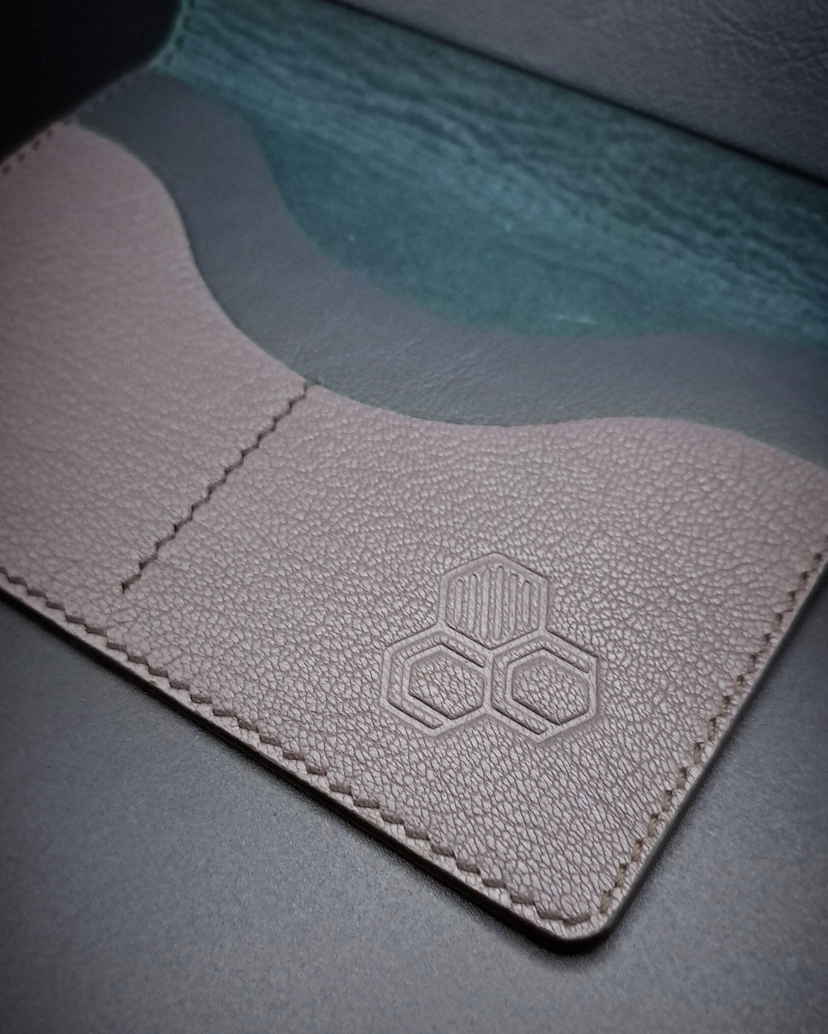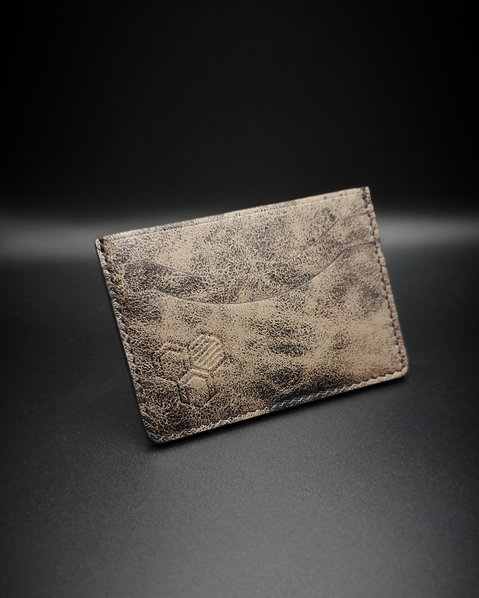 Придерживаясь минимализма, мы создали наш первый кошелек, имевший одно отделение для денег и два для карт. Сейчас дизайн полностью доработан, и в этой модели продумано все. Стандартная версия на 4 карты. Прошивается и обрабатывается только вручную!