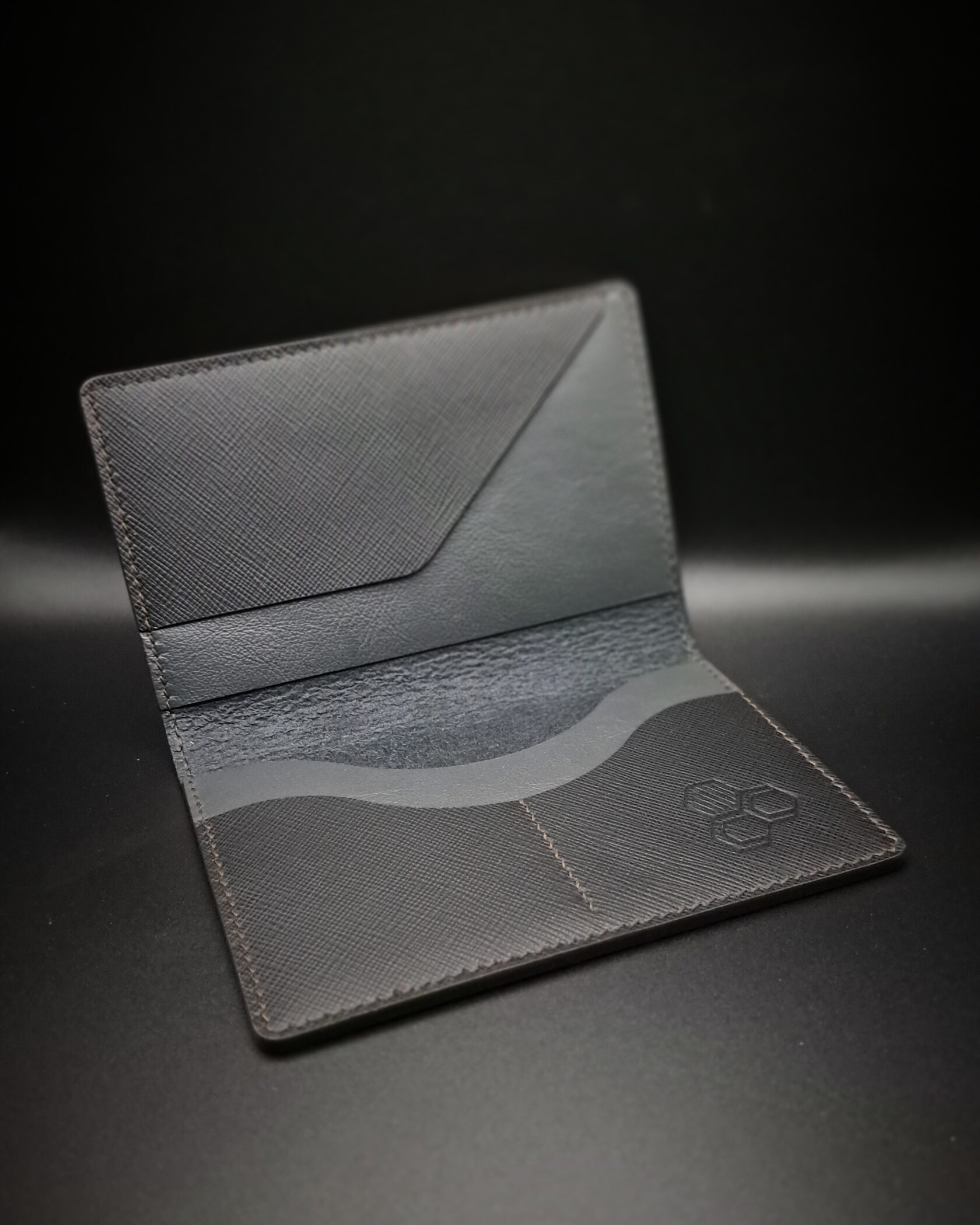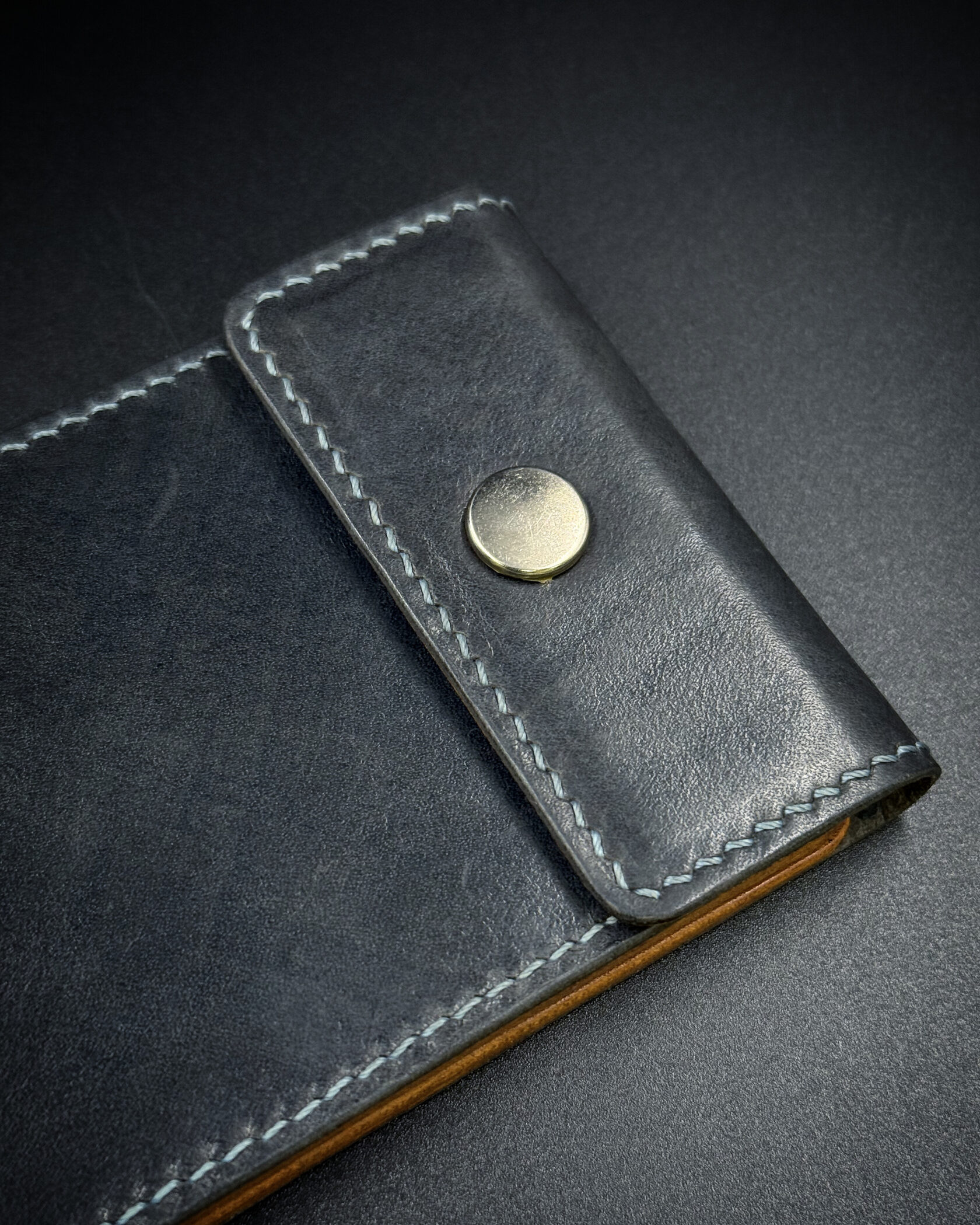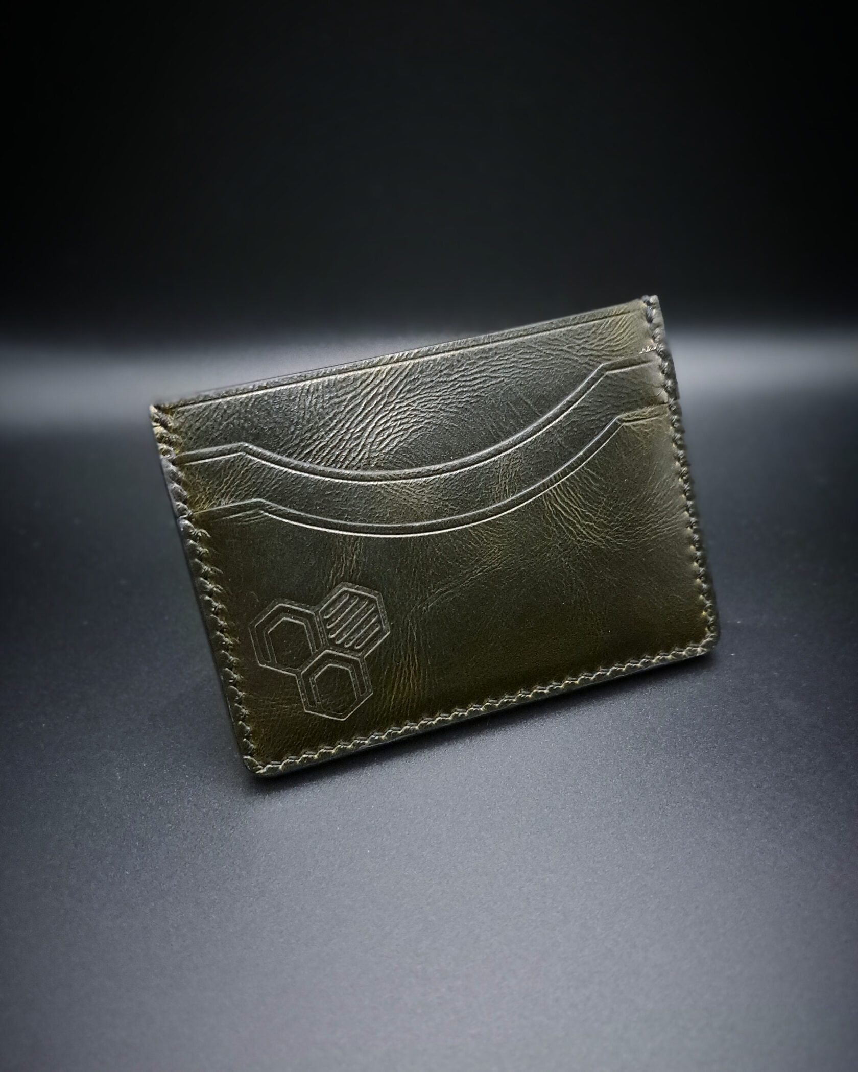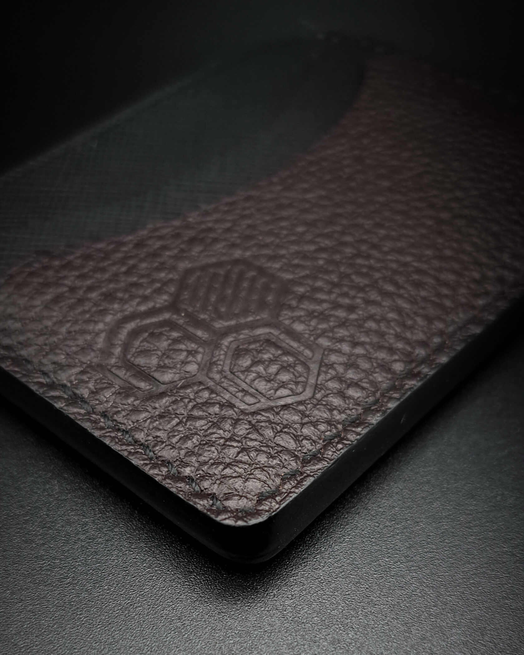 Придерживаясь минимализма, мы создали наш первый кошелек, имевший одно отделение для денег и два для карт. Сейчас дизайн полностью доработан, и в этой модели продумано все. Стандартная версия на 4 карты. Прошивается и обрабатывается только вручную!