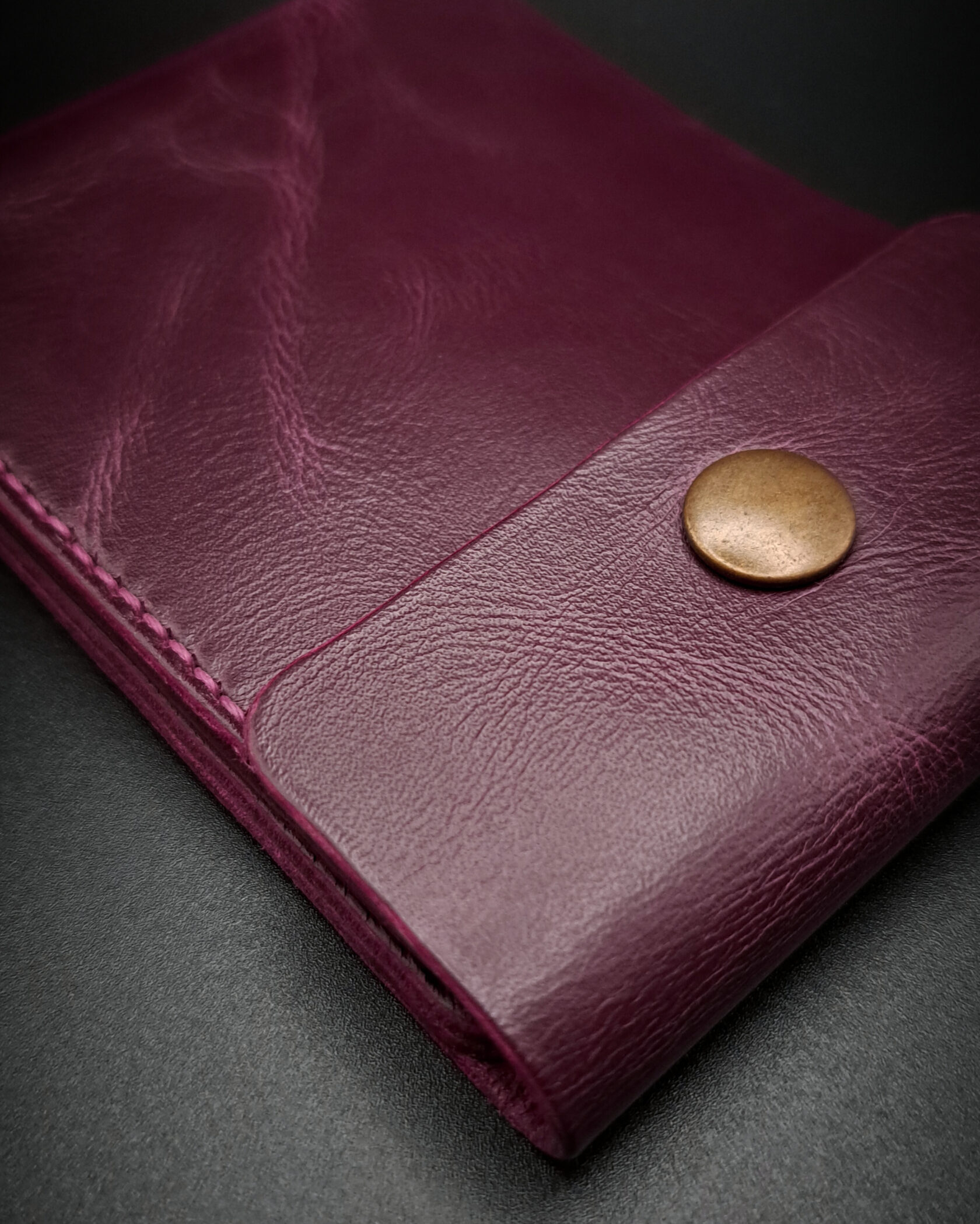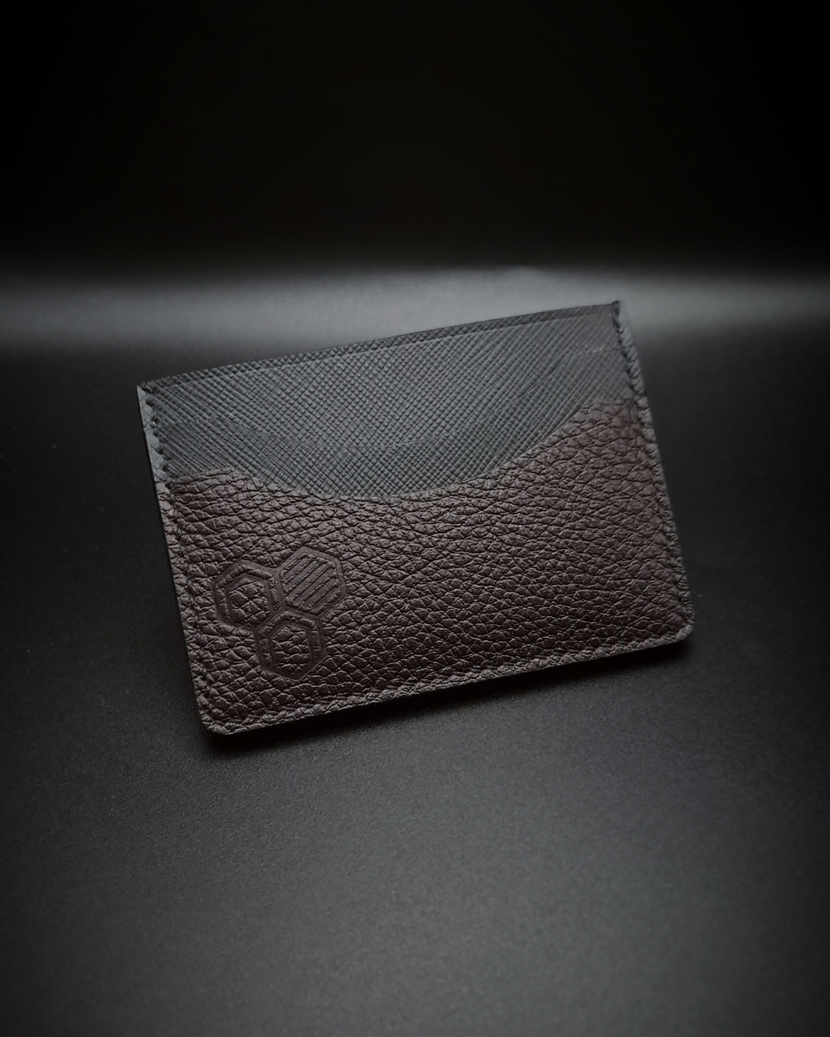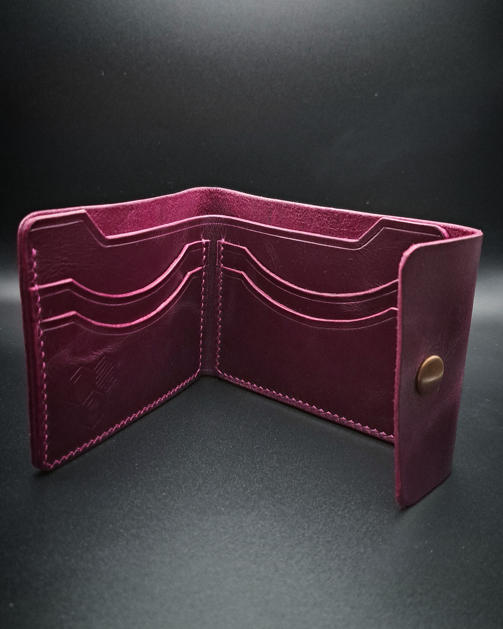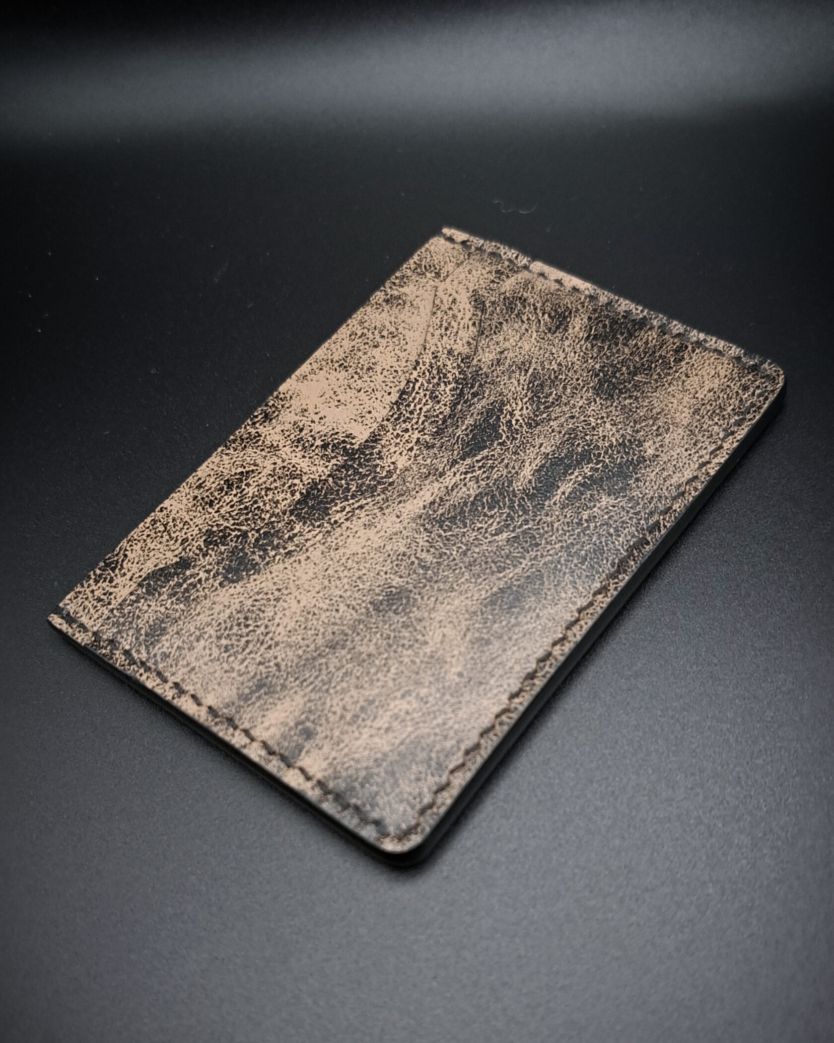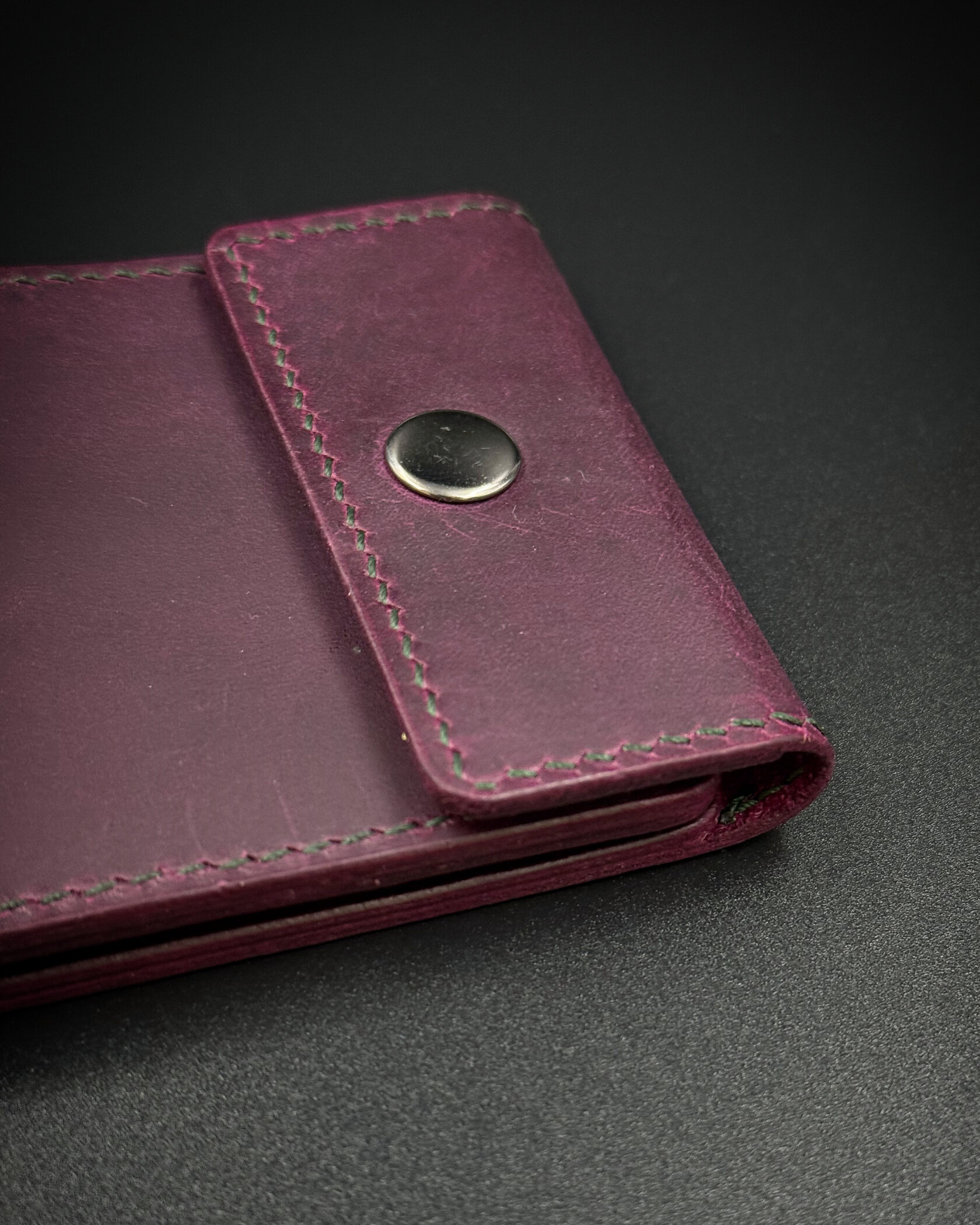 Придерживаясь минимализма, мы создали наш первый кошелек, имевший одно отделение для денег и два для карт. Сейчас дизайн полностью доработан, и в этой модели продумано все. Стандартная версия на 4 карты. Прошивается и обрабатывается только вручную!