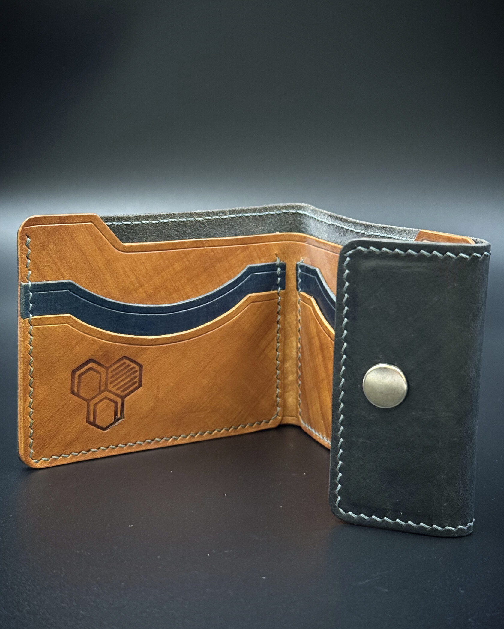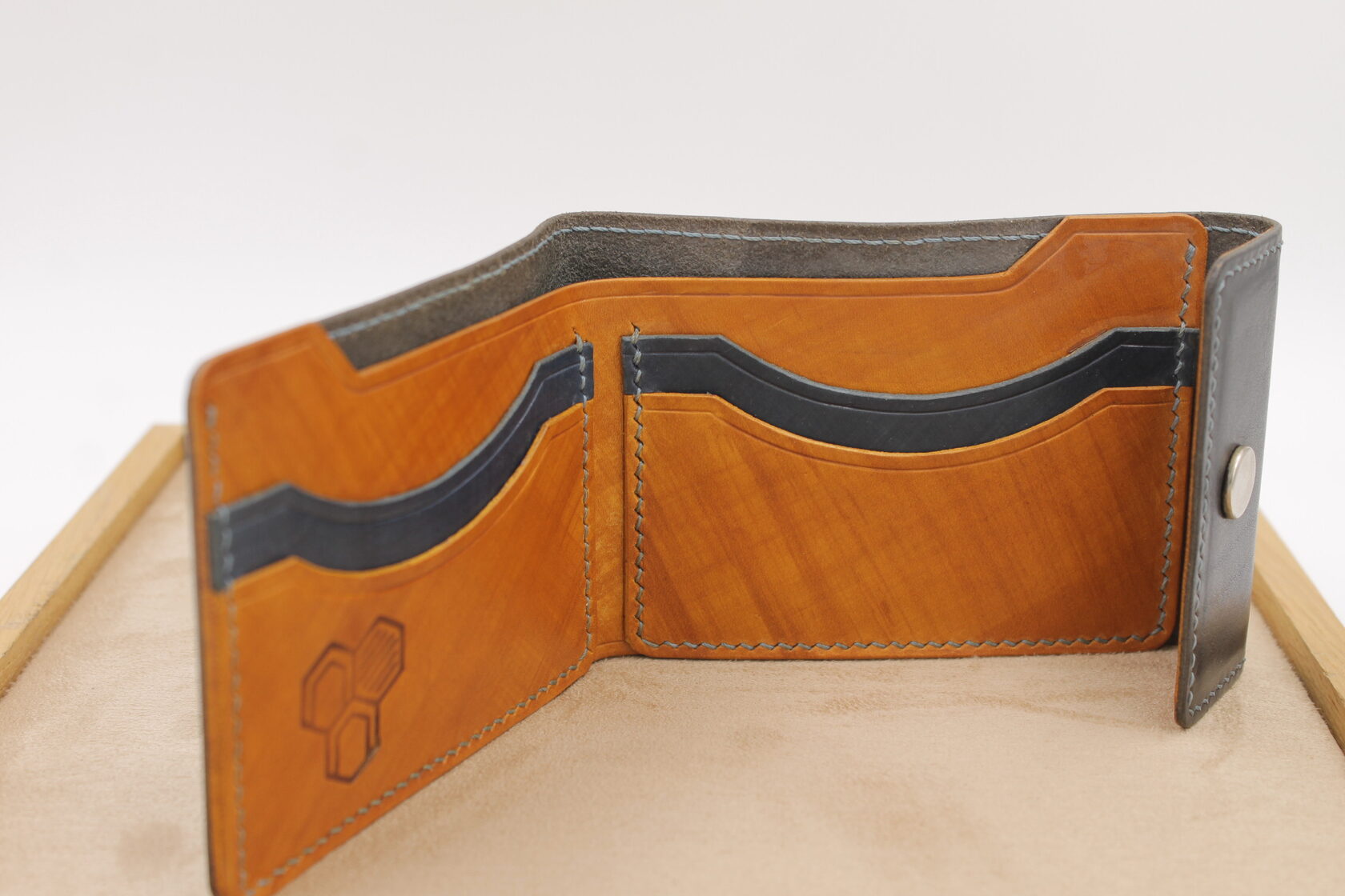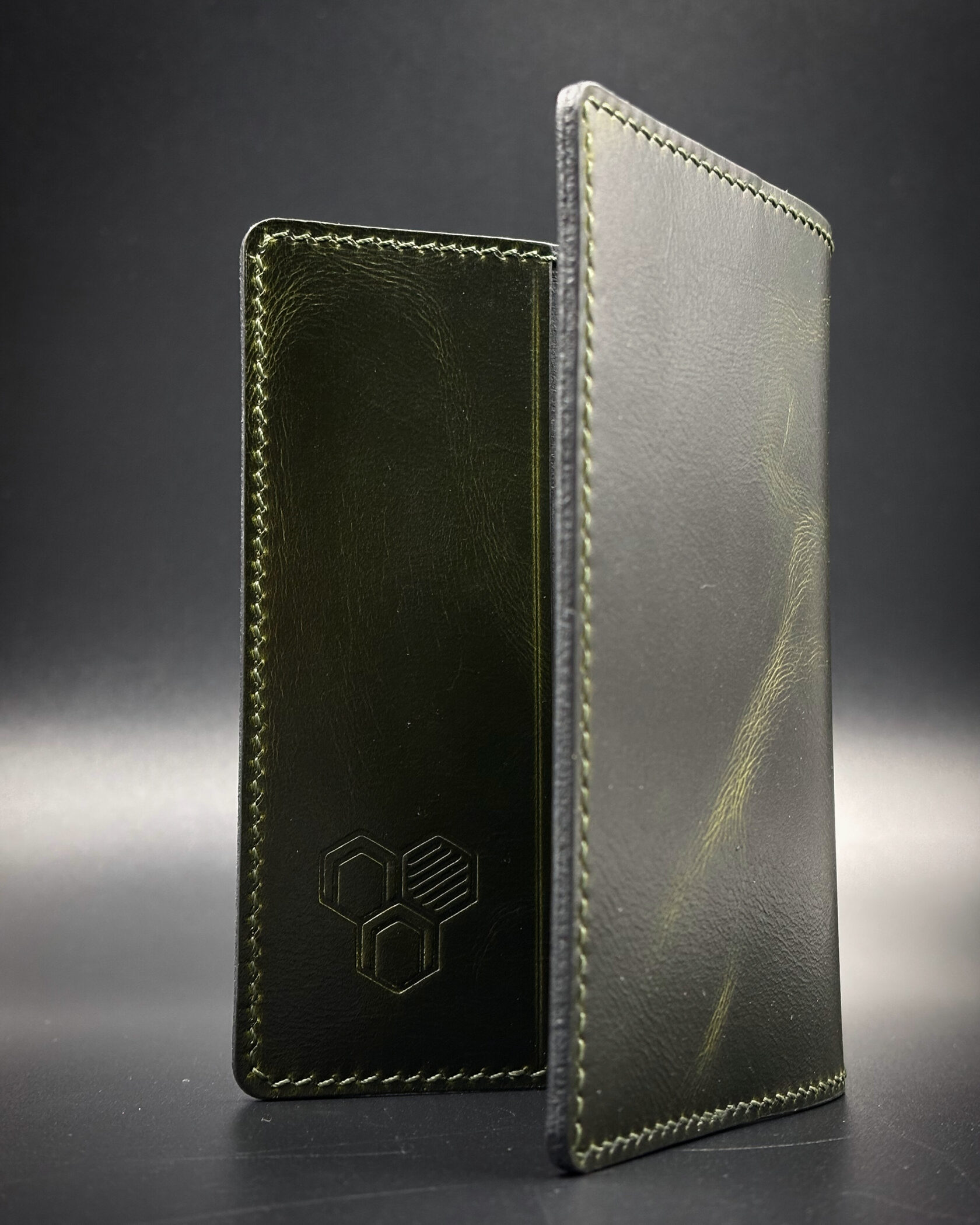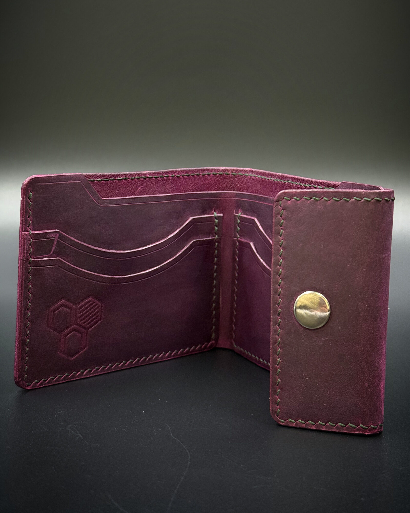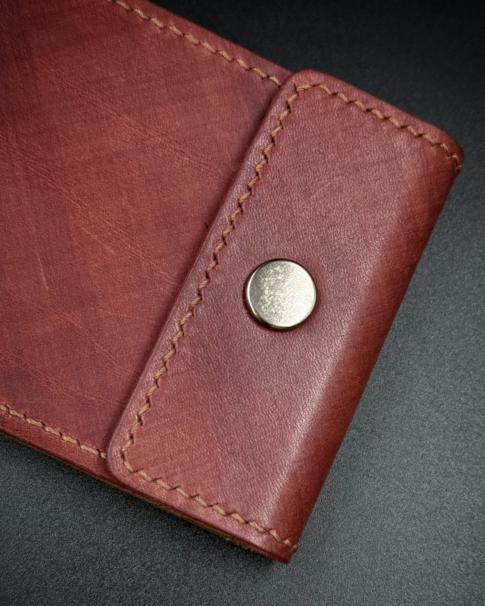 Придерживаясь минимализма, мы создали наш первый кошелек, имевший одно отделение для денег и два для карт. Сейчас дизайн полностью доработан, и в этой модели продумано все. Стандартная версия на 4 карты. Прошивается и обрабатывается только вручную!
