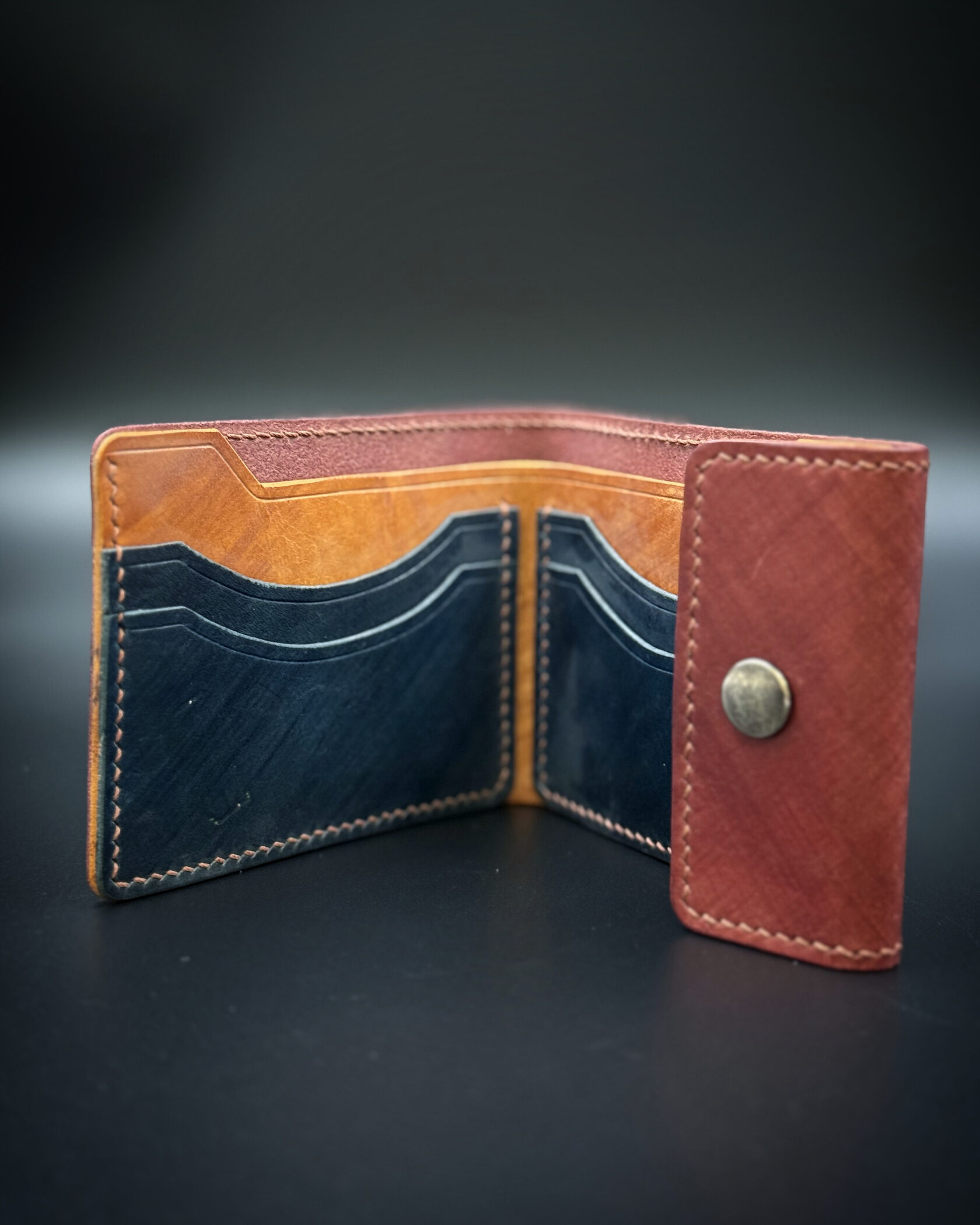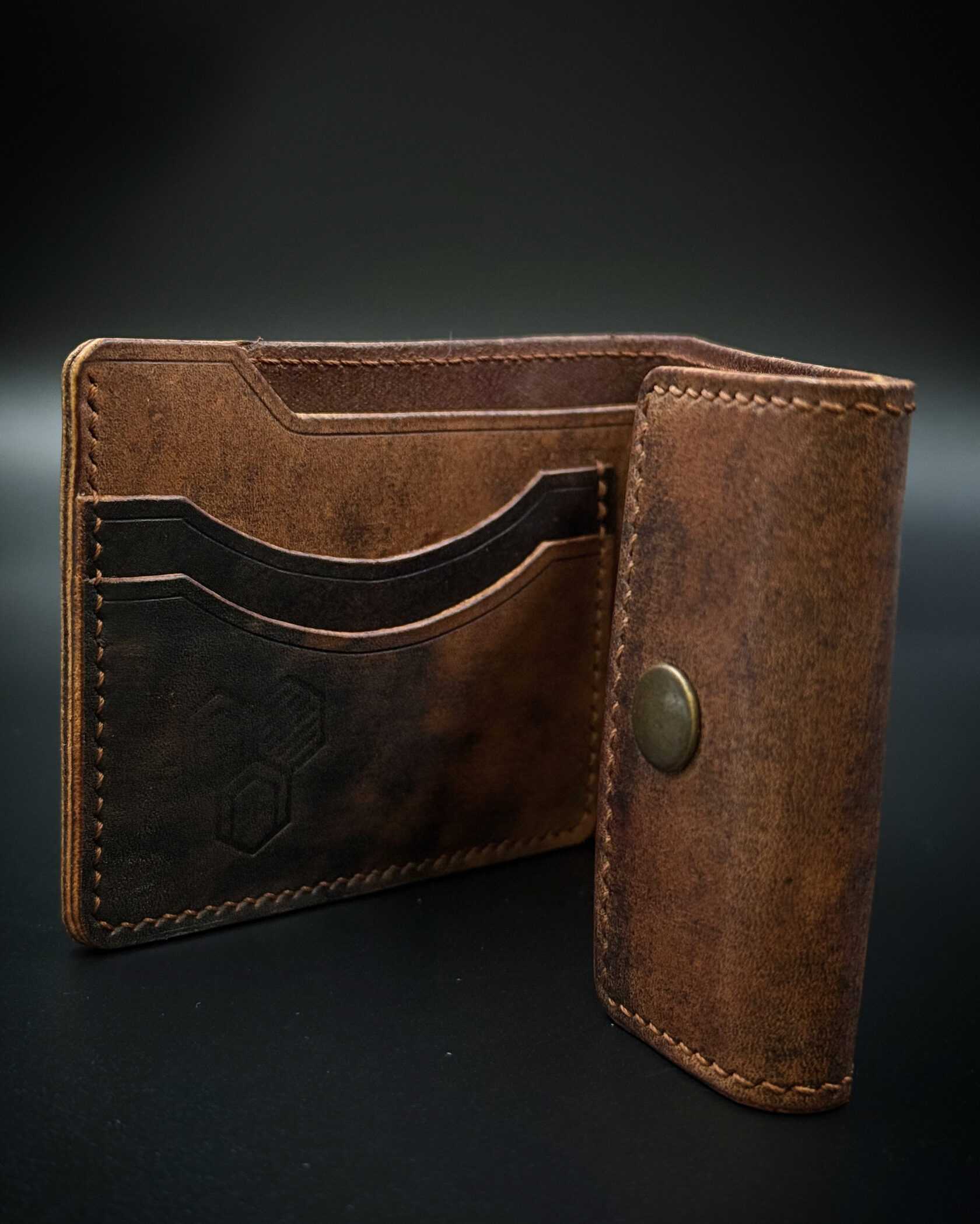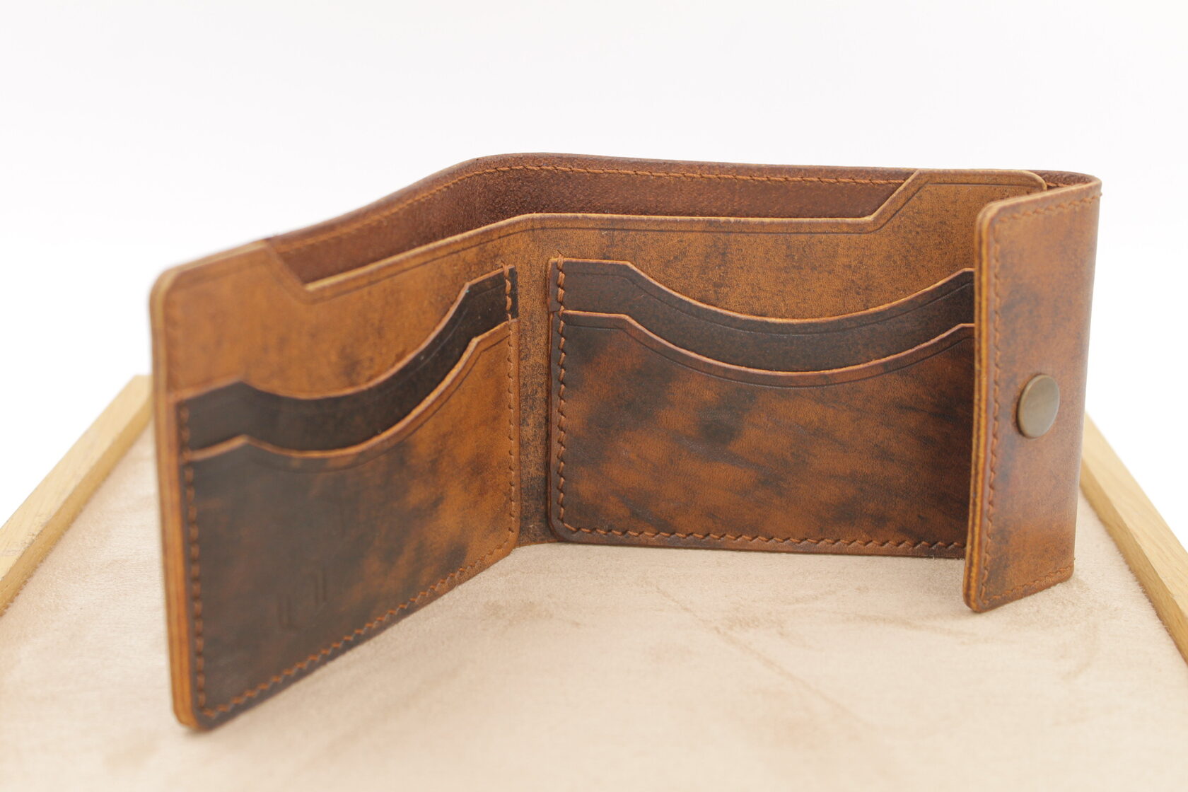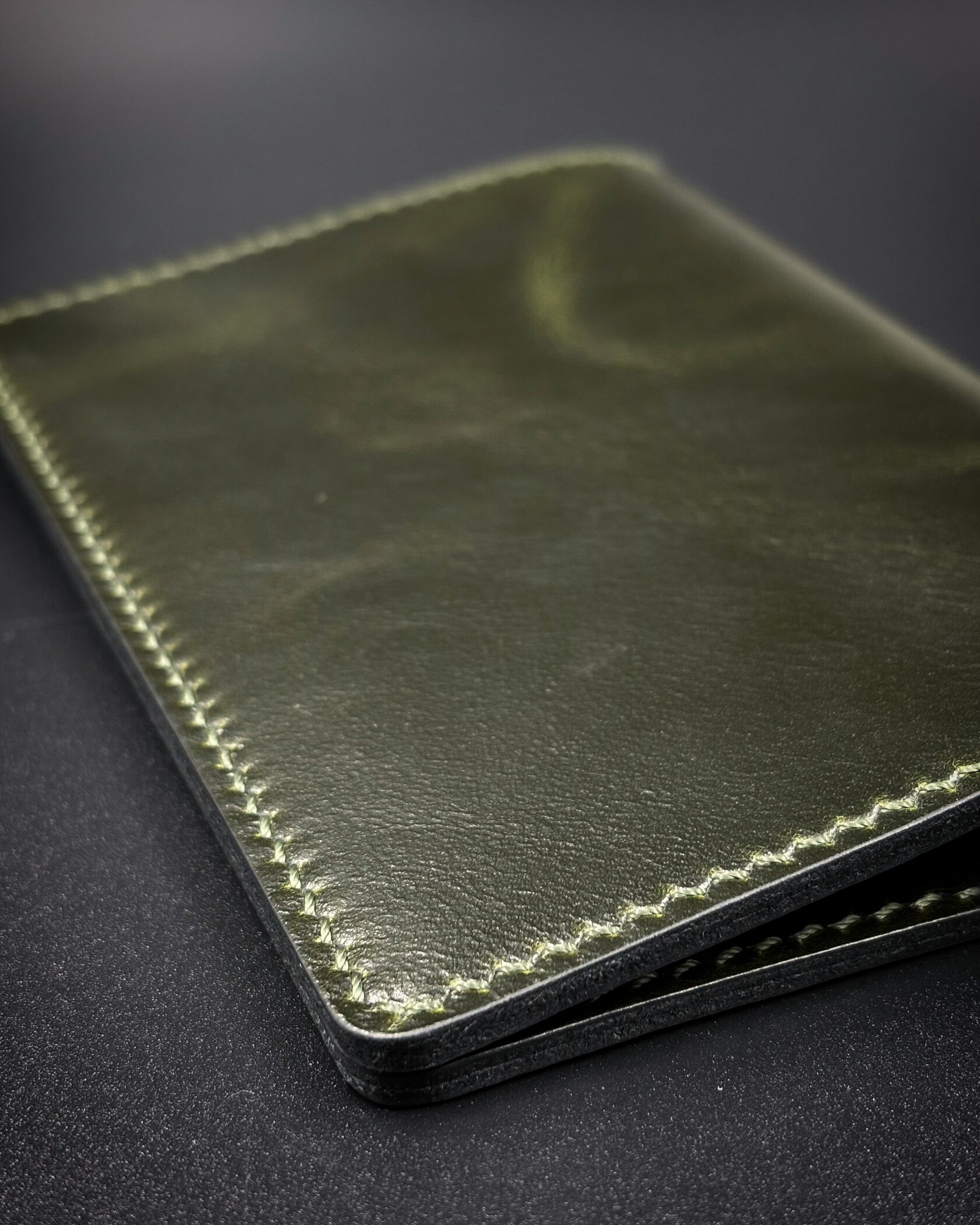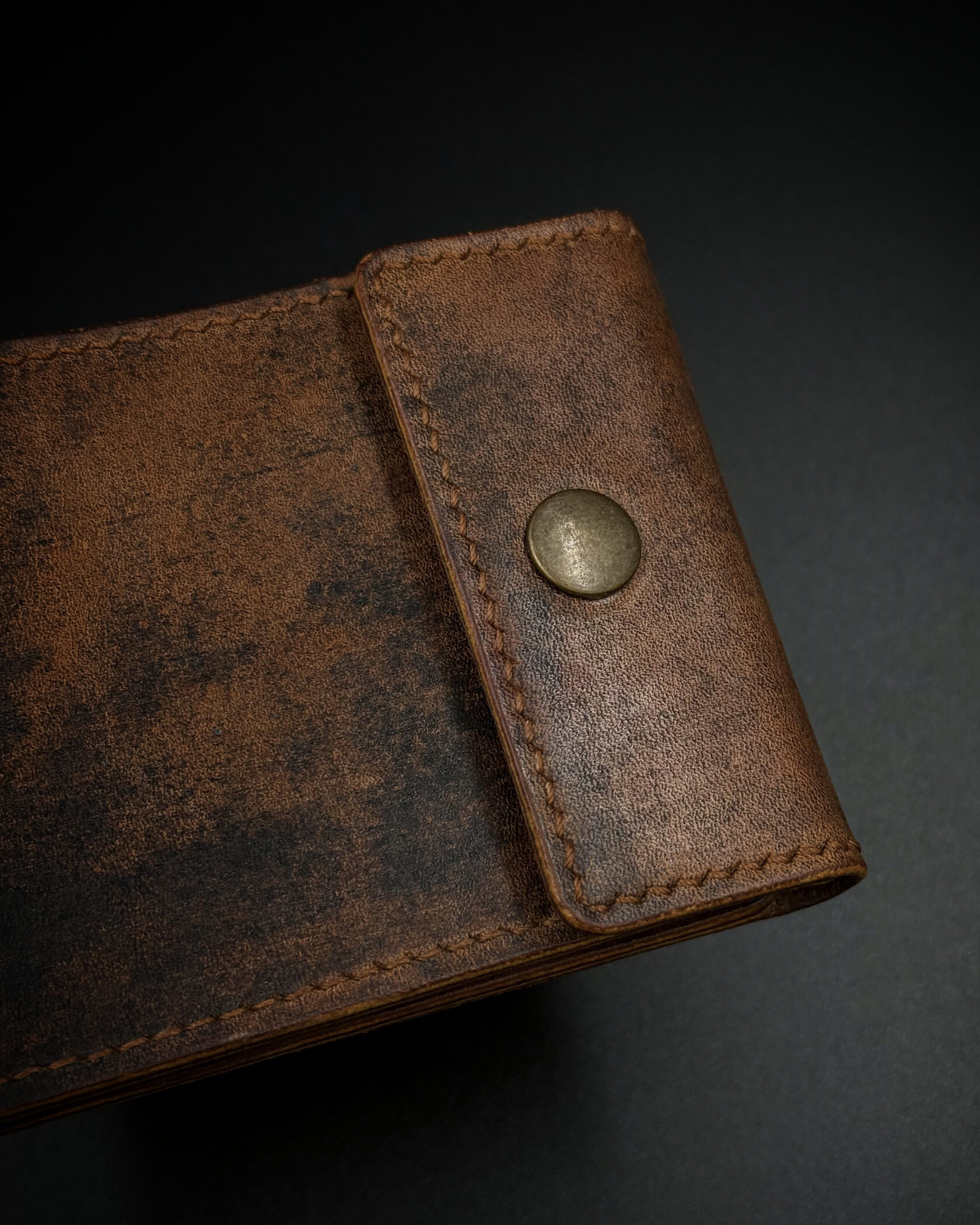 Придерживаясь минимализма, мы создали наш первый кошелек, имевший одно отделение для денег и два для карт. Сейчас дизайн полностью доработан, и в этой модели продумано все. Стандартная версия на 4 карты. Прошивается и обрабатывается только вручную!